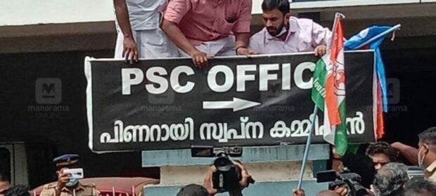 തൃശൂർ∙ പിഎസ്സി ഓഫിസിനു മുന്നിൽ ‘പിണറായി സ്വപ്ന കമ്മിഷൻ’ എന്ന ബോർഡ് സ്ഥാപിച്ച് ..